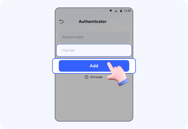 Enter “Facebook” in Account name and paste the key in Your key -> tap Add