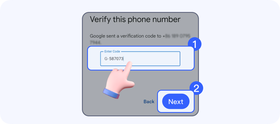 Return to Google, click Next, enter the 6-digit code and click Verify.