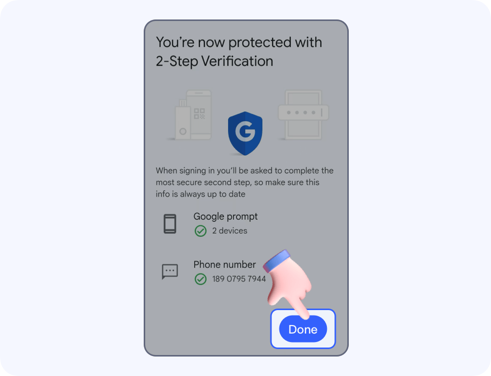 Now 2-step verification is successfully turned on for your Google account. Click Done.