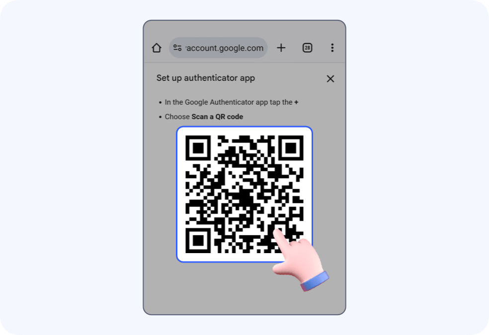 Now you can see a QR code. It’s used to scan and save your Google account to SecureAuth.