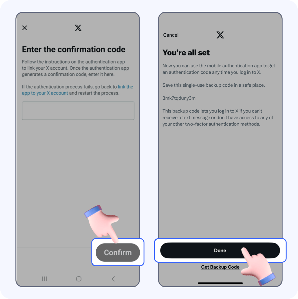 Paste the code in the input field and tap Confirm. Your Twitter account is now protected by SecureAuth.