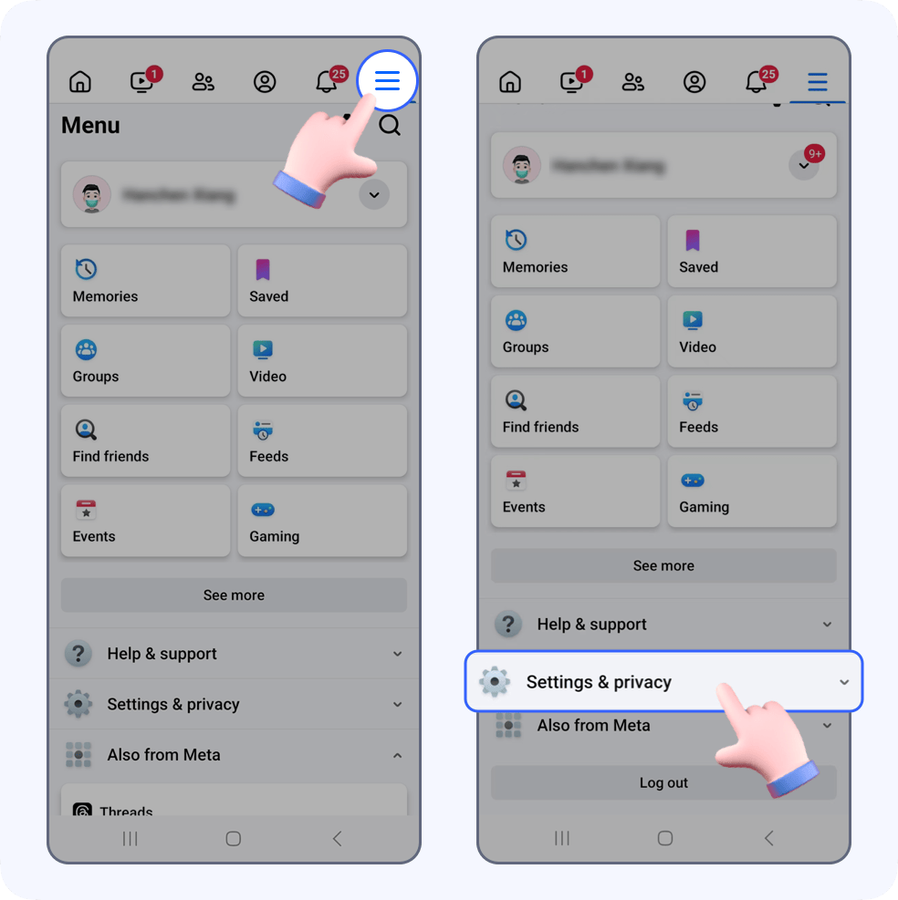 Open Facebook, tap Menu and then Settings & privacy.