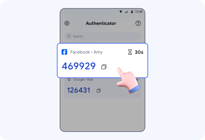 Your Facebook account will be auto saved to Authenticator. You will also see an auto-generated 6-digit code.