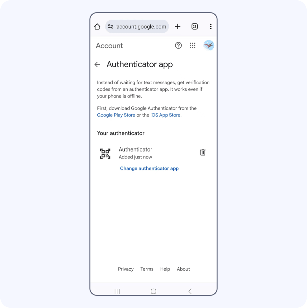 🎉Done! Now the method of using an authenticator to verify is successfully added, and your Google account is protected by SecureAuth.