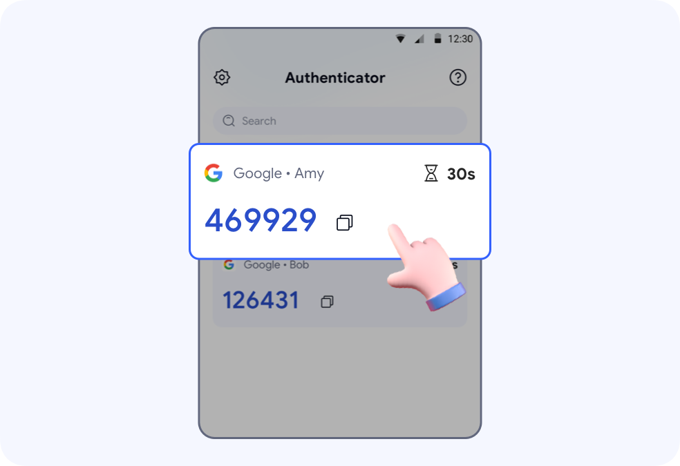 Your Google account will be auto saved to SecureAuth. You can also see an auto-generated 6-digit code.