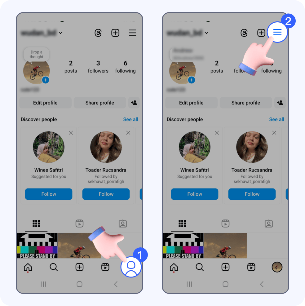 Open Instagram and log in to your account. Tap the profile icon in the lower right corner, then tap the 3-bar icon in the upper right corner.