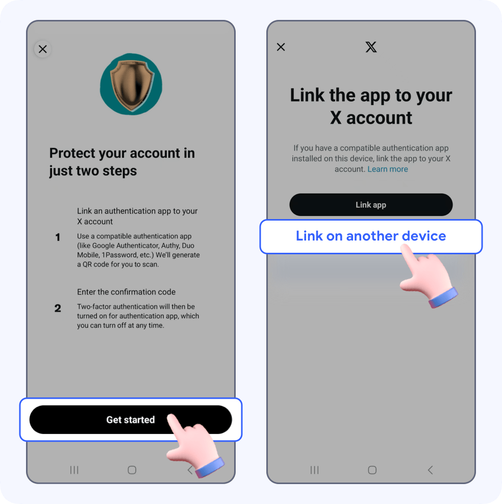 On the next page, tap Get started -> Link on another device